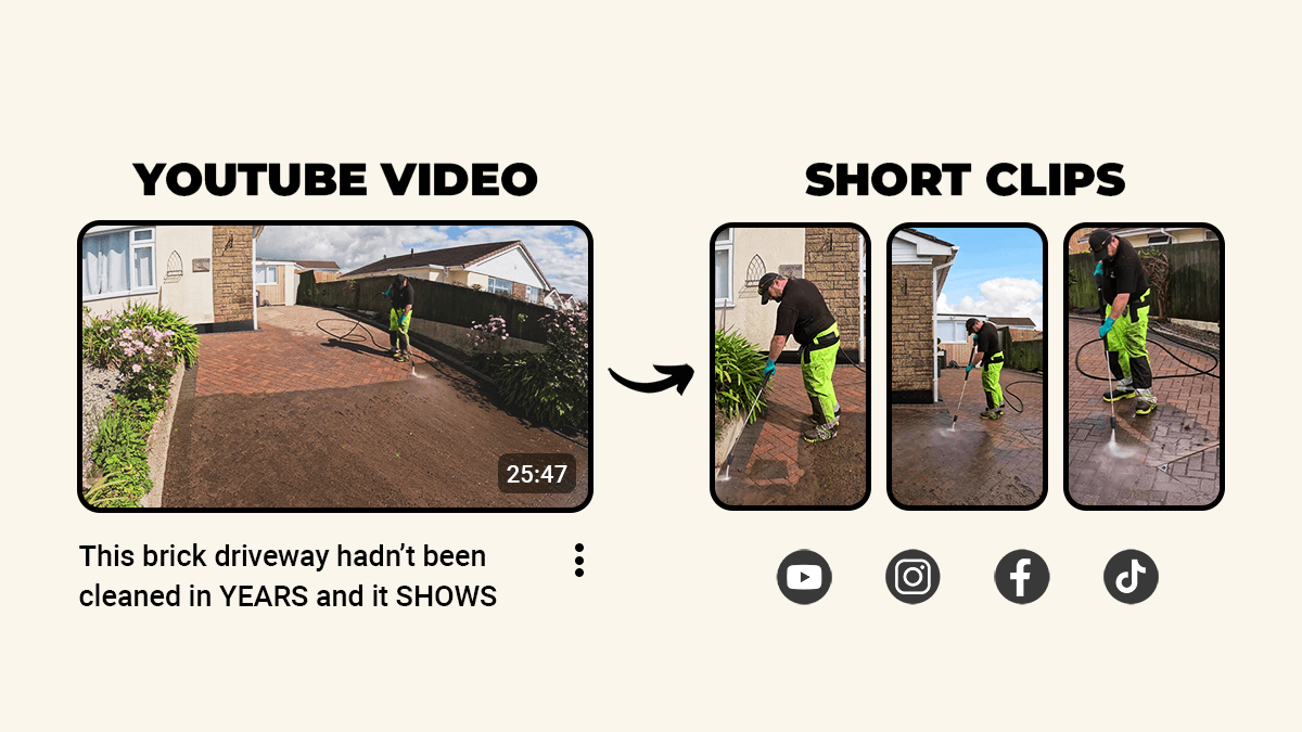 We turn your footage into YouTube videos and short clips, edited and posted while you run your business.