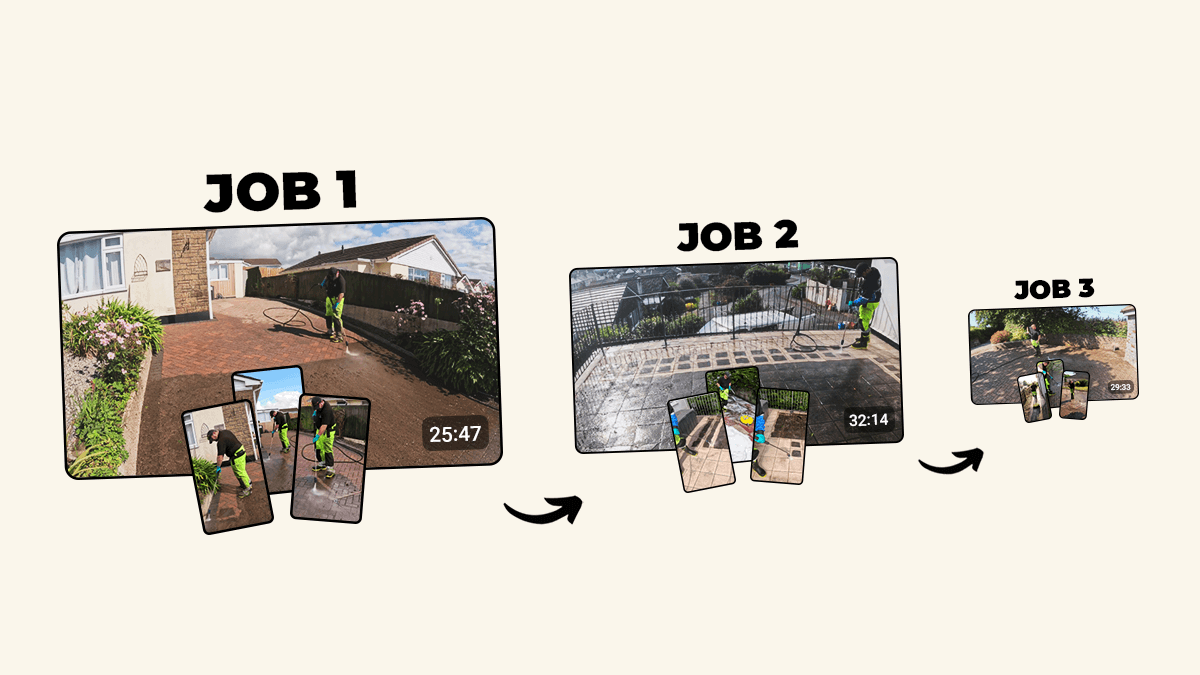 You send us the raw job footage. That’s it — no editing, planning, or posting on your side.